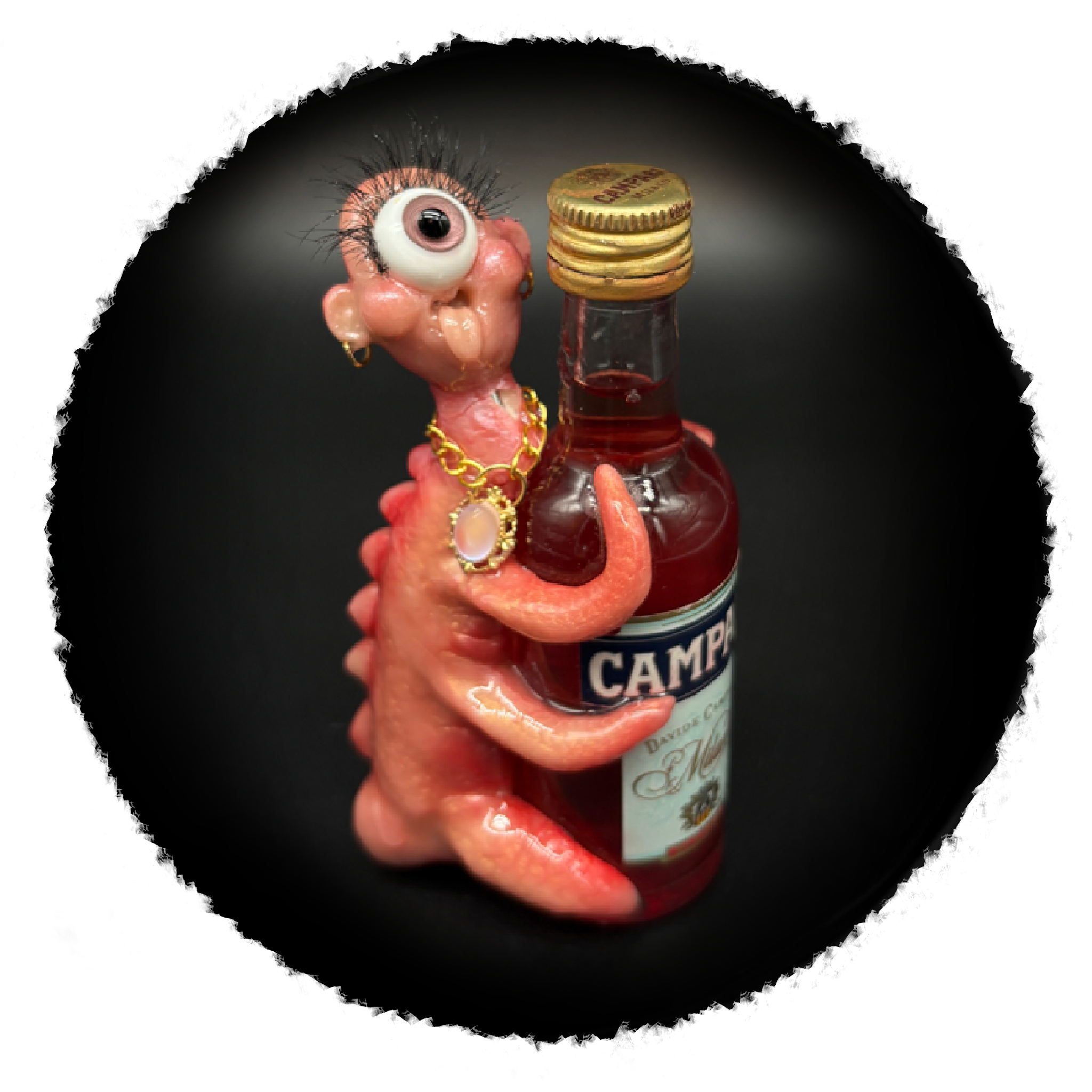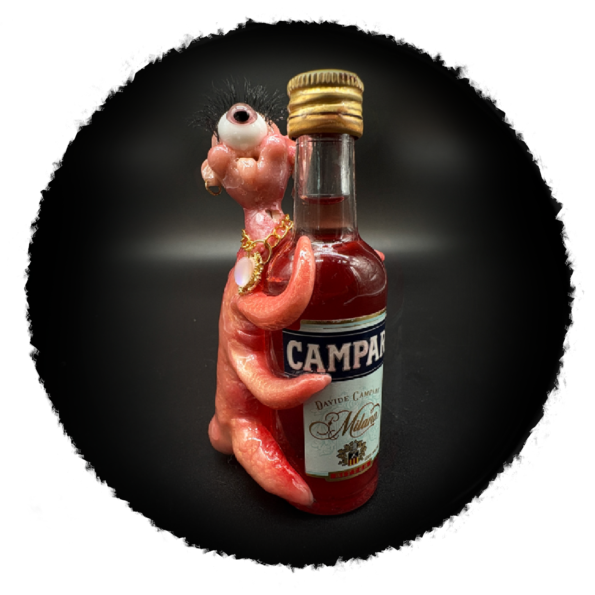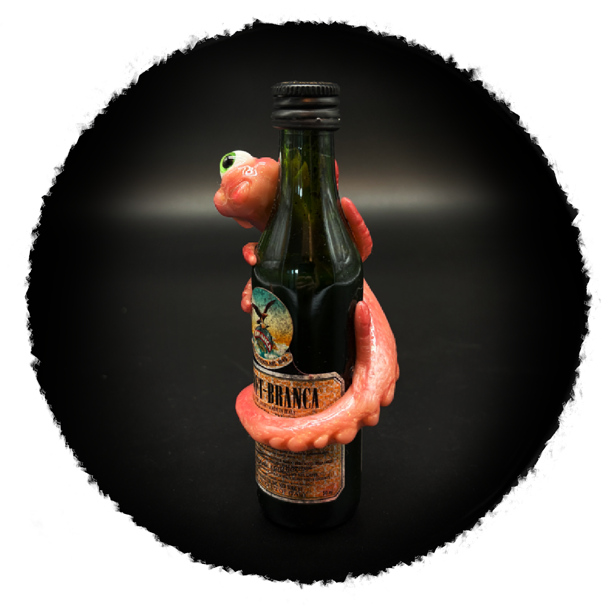 Mini bottle of Fernet + mini hand sculpted weirdo + epoxy resin = best collectable gift for a bartender or sophisticated alcoholic ( most likely both )